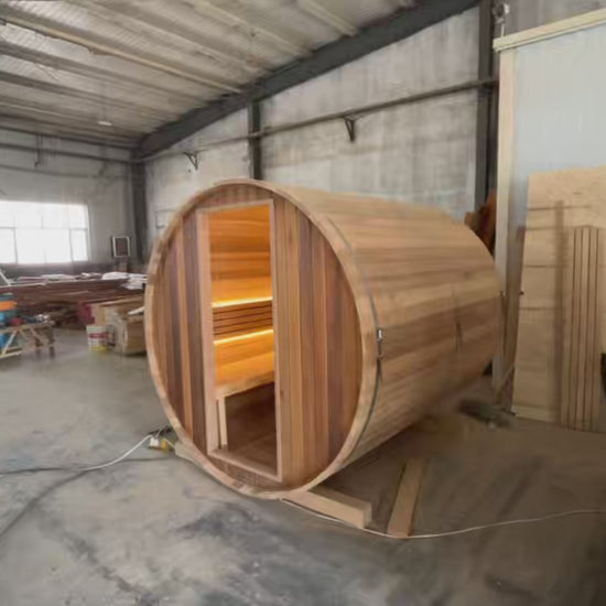 Barrel Sauna: Distinct barrel-shaped design for enhanced heat circulation and efficiency, heats up faster than square sauna. Crafted for elegance and efficiency, the heat gets circulated back down along the curved walls instead of pooling near the top, this creates a constant flow of evenly distributed heat throughout the sauna